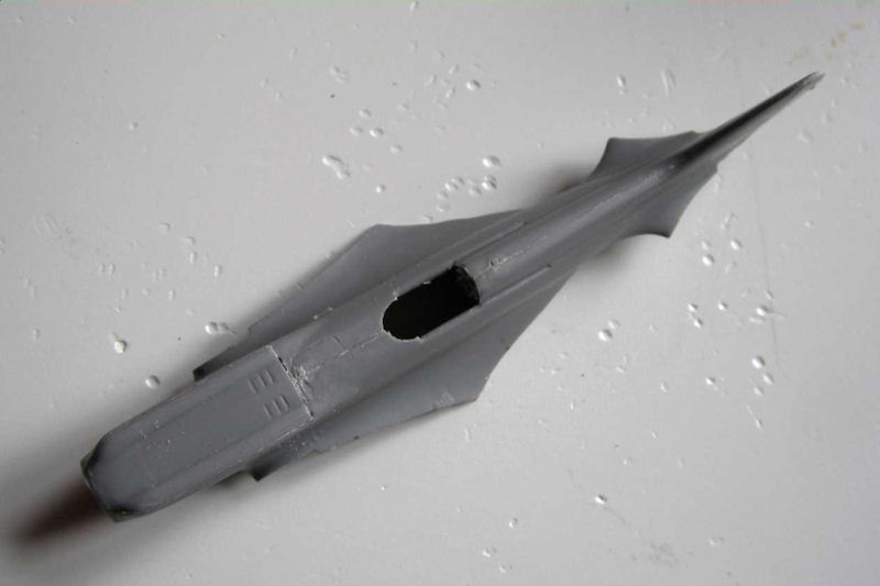 Bei den zusammengeklebten Rumpfhälften sind die Nähte zu verspachteln. Diese auf die Tragflächen zu montieren ist der arbeitsaufwändigste Bauabschnitt. Hier muss man immer wieder trocken probieren. Wenn denn alles angepasst ist verklebt man das Ganze Schrittweise von hinten nach vorn. Den vorderen Teil verklebt man unter Spannung.
