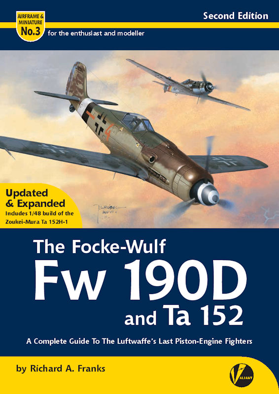 In der bekannten Reihe Airframe & Miniature erschien jüngst die zweite Auflage des Band 3 über die mittels Reihenmotor angetriebene Focke-Wulf Fw 190D und der Tank Ta 152. In der üblichen Aufmachung mit vielen für Modellbauer nützlichen Skizzen lassen sich die Versionsunterschiede deutlich herausarbeiten. Natürlich geht der Autor Richard A. Franks auch auf Rüstsätze ein. Eine Vielzahl von Fotos ergänzen das Ganze. Das sind auch Abbildungen von Museumsmaschinen und aus den Handbüchern der Originale.