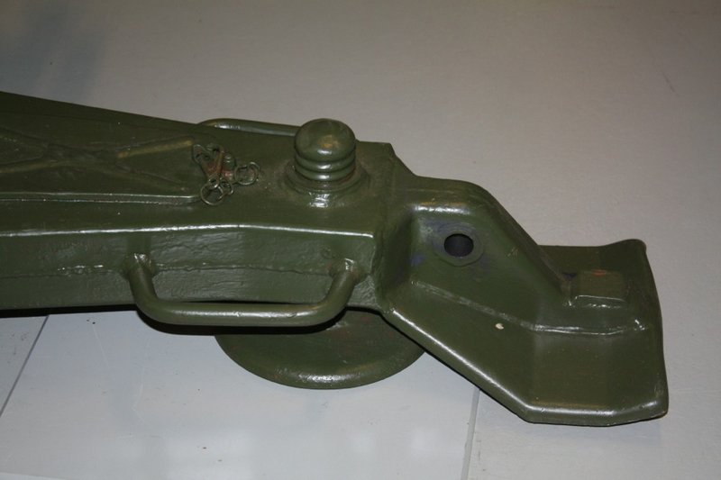 So ist die Form und Länge des Sockelfußes deutlich anders (zu lange und falsche Winkel) und musste durch aufwändige Korrekturen, Verspachteln und Verschleifen hinsichtlich Geometrie angepasst werden. Desweiteren habe ich die Bohrung vergrößert und mit einem Ring aus Rundmaterial auf beiden Seiten versehen. Im vorderen Bereich ist auf den Referenzbildern auch eine kleine quadratische Metallplatte zu erkennen, die ebenso ergänzt wurde. Nach dem Hinzufügen von Schweißnähten wurden noch die Außenkanten abgeschliffen bzw. abgerundet.